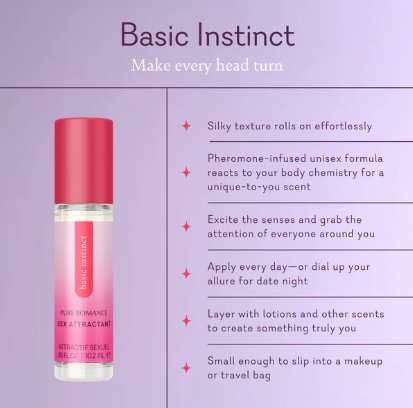 Turn heads and spark curiosity with Basic Instinct — the pheromone-infused roll-on fragrance designed to enhance your natural allure. This unisex scent reacts with your unique body chemistry to create a one-of-a-kind fragrance that’s entirely yours.