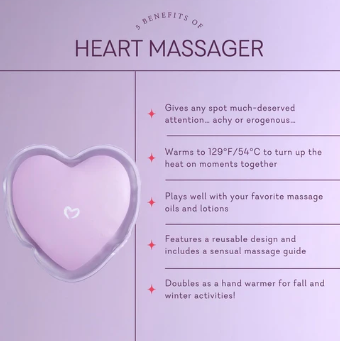 Turn your massage moments into unforgettable heat therapy with this reusable, heart-shaped warming massager. Just snap the metal disc inside to activate and feel the temperature rise — reaching over 129°F (54°C) in seconds. Perfect for creating spa-like sensations at home, it’s ideal for relaxing sore muscles or turning up the heat during foreplay.