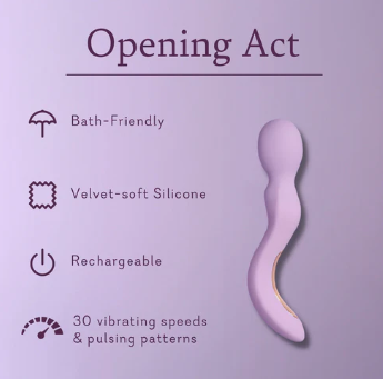 Opening Act delivers pleasure that deserves a standing ovation. With 30 tantalizing vibrations and pulsation patterns, this silicone wand-style clitoral vibrator is ergonomically designed to hug your curves and heighten your every sensation.