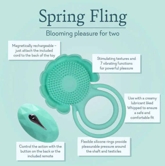 Ecstasy is in bloom with Spring Fling, the dual silicone c-ring built for unforgettable pleasure.