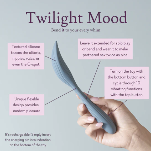 Fall into a deeper kind of pleasure with Twilight Mood, a flexible wand vibrator that bends to your body’s every curve. This silky-smooth wand delivers 10 powerful vibration speeds and pulsing patterns, giving you total control over your pleasure—whether it’s solo time or partner play.