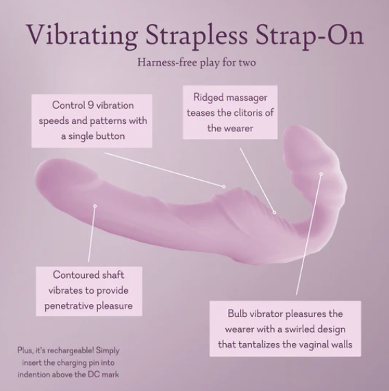 No harness? No problem. Meet the Vibrating Strapless Strap-On, the ultimate couples toy that brings shared satisfaction to a whole new level.